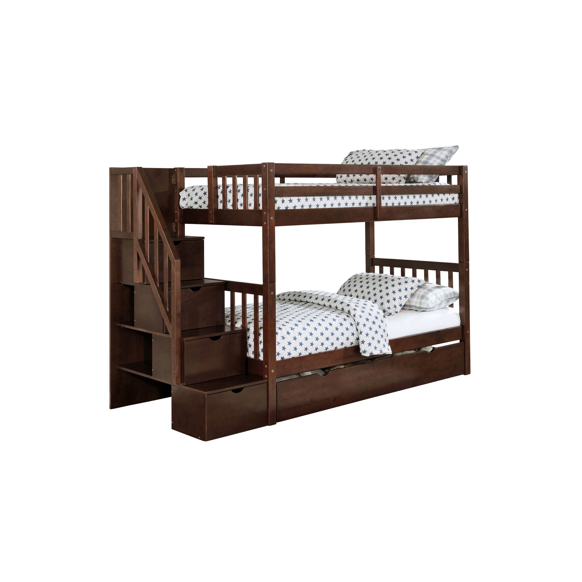 Stairway Bunk Bed With Built In Storage Drawers from www.montgomerys.com Also, with the option of adding an under bed trundle or a set of 2 under bed drawers. Bunk beds twin over twin stairway cappuccino + trundle. Bedz king stairway bunk bed.